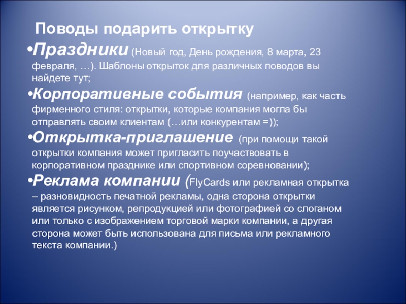 Это сайт презентаций, где можно хранить и обмениваться своими презентациями, докладами, проектами, шаблонами в формате PowerPoint с другими пользователями. Мы помогаем школьникам, студентам, учителям, преподавателям хранить и обмениваться учебными материалами.