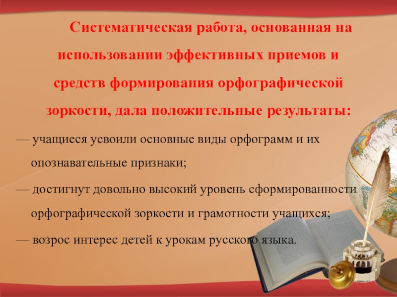 эффективных приемов и средств формирования орфографической зоркости, дала положительные результаты: