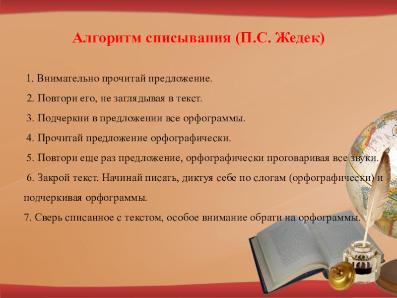 — алгоритму списывания с включением нахождения, выделения и проверке орфограмм.