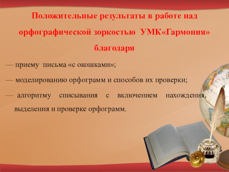 Слайд 22Положительные результаты в работе над орфографической зоркостью УМК«Гармония» благодаря