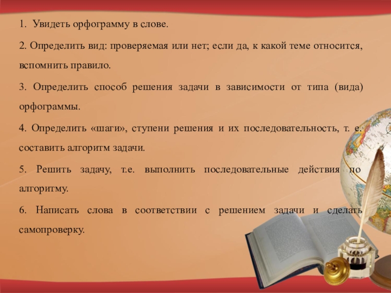 3. Определить способ решения задачи в зависимости от типа (вида) орфограммы.