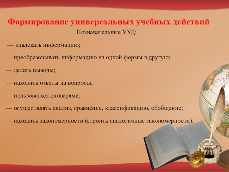 — осуществлять анализ, сравнение, классификацию, обобщение;