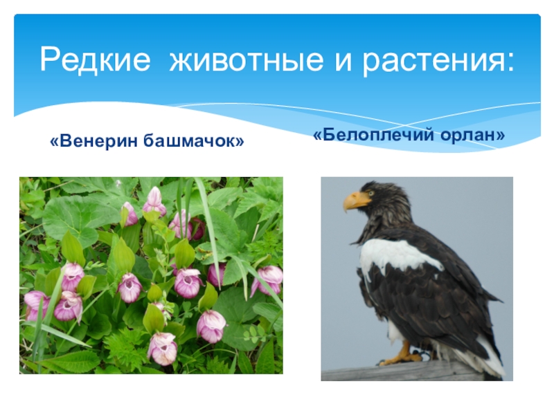 Редкие животные и растения:«Венерин башмачок»«Белоплечий орлан»