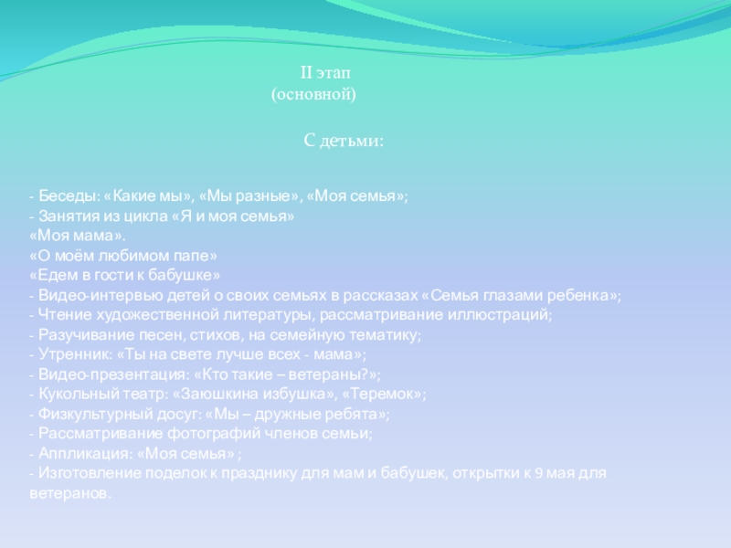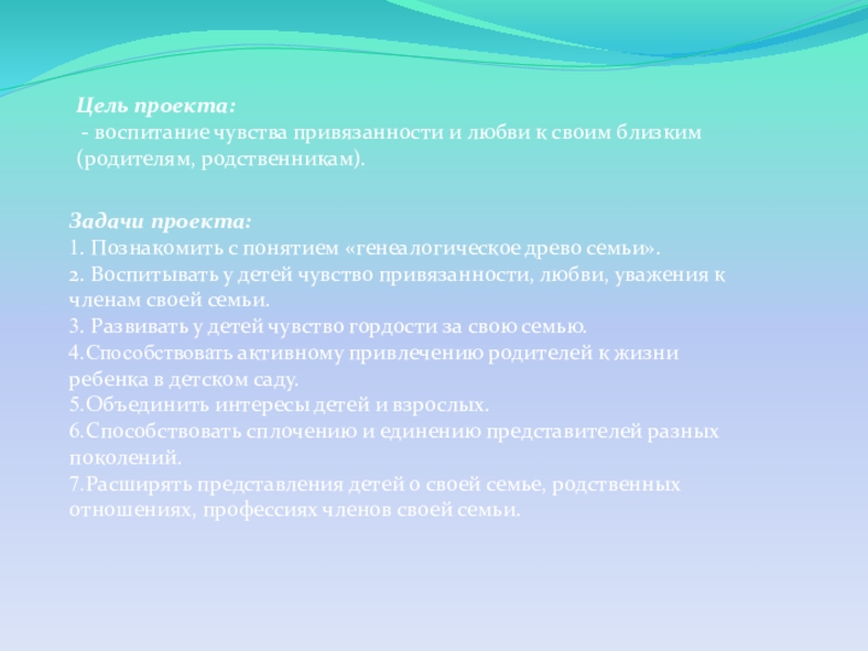 2. Воспитывать у детей чувство привязанности, любви, уважения к членам своей семьи.