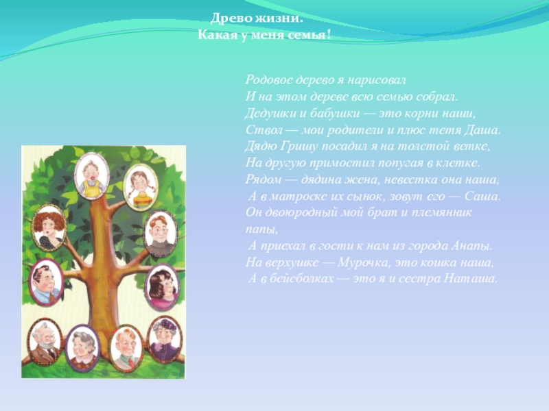 1. Познакомить с понятием «генеалогическое древо семьи».