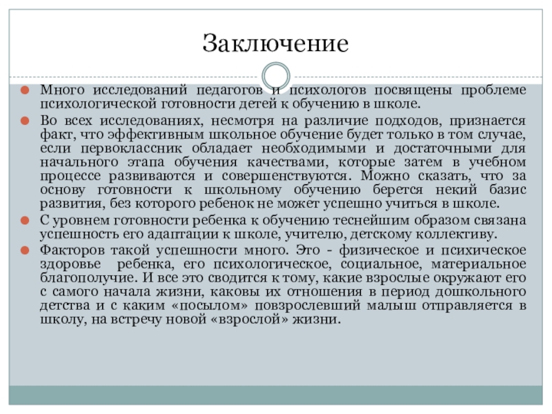Много исследований педагогов и психологов посвящены проблеме психологической готовности детей к обучению в школе - Л.С. Выготского, А. Анастази, Л.И. Божович, Д.Б. Эльконина, Н.Г. Салминой, Е.Е. Кравцовой и т.д.