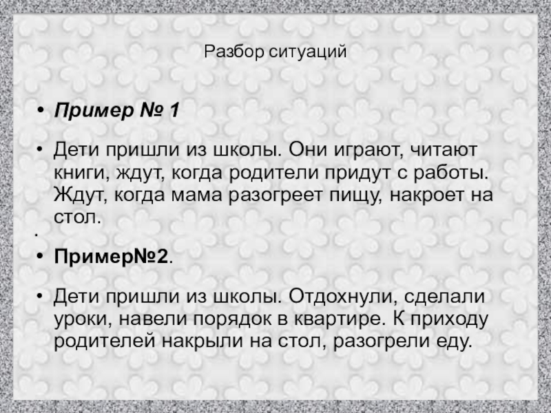 Дети пришли из школы. Отдохнули, сделали уроки, навели порядок в квартире. К приходу родителей накрыли на стол, разогрели еду.