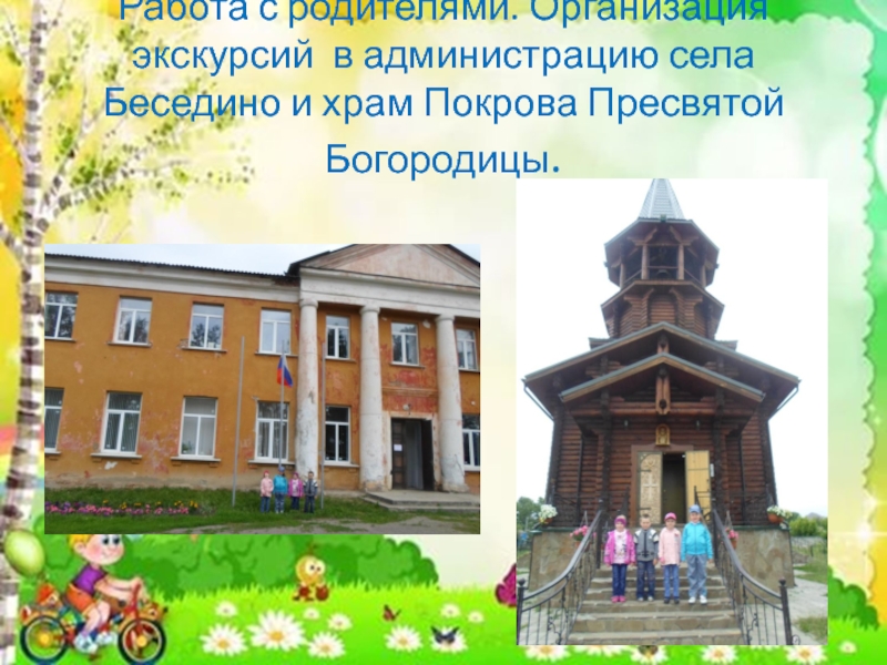 Слайд 20Работа с родителями. Организация экскурсий в администрацию села Беседино и храм