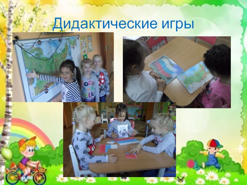 Дидактические игры: «Узнай наш флаг (герб)»; «С какого дерева листок»; «Чей хвост, чья голова»;