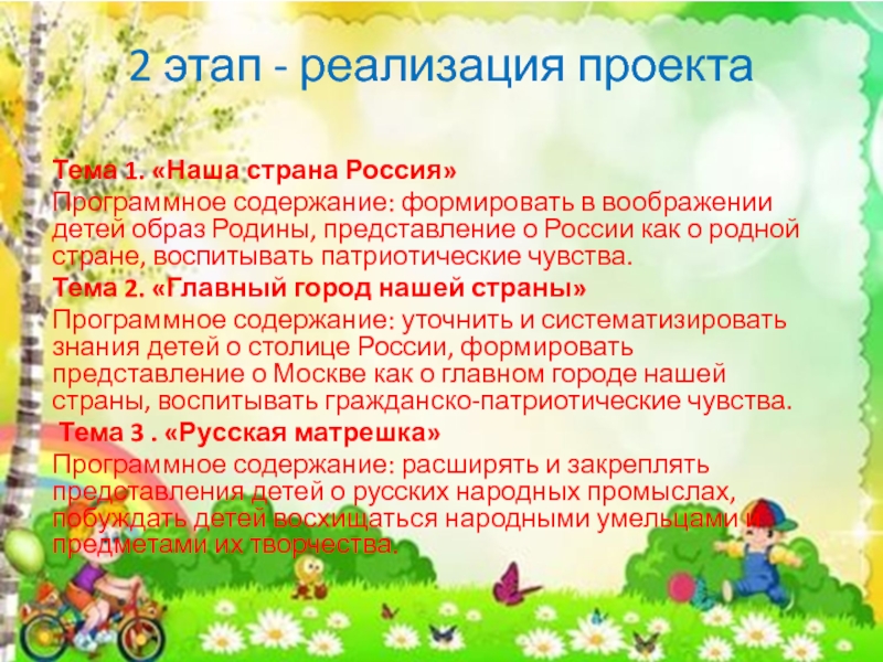 в воображении детей образ Родины, представление о России как о родной стране, воспитывать патриотические чувства.