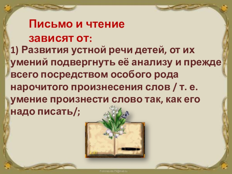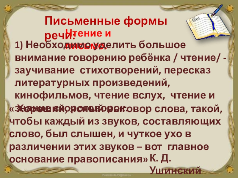 « Хороший, ясный выговор слова, такой, чтобы каждый из звуков, составляющих слово, был слышен, и чуткое ухо в различении этих звуков – вот главное основание правописания»