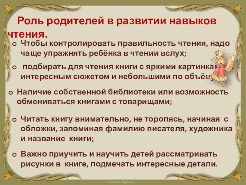 подбирать для чтения книги с яркими картинками, с интересным сюжетом и небольшими по объёму;