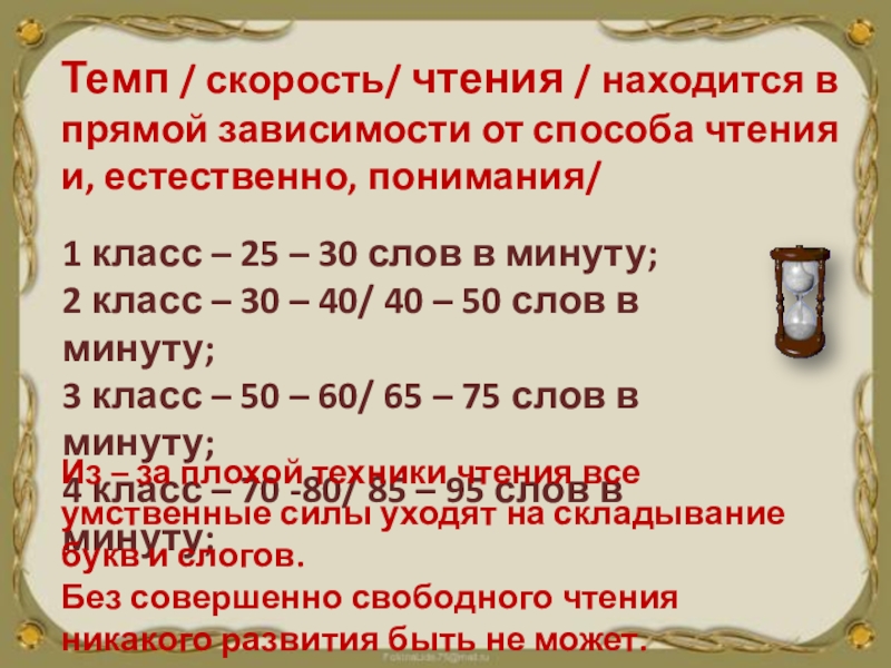1 класс – 25 – 30 слов в минуту;