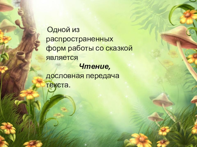 Одной из распространенных форм работы со сказкой является Чтение,дословная передача текста.
