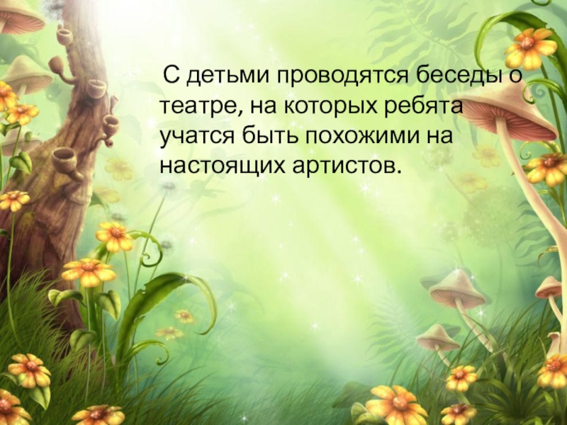Слайд 23 С детьми проводятся беседы о театре, на которых ребята учатся