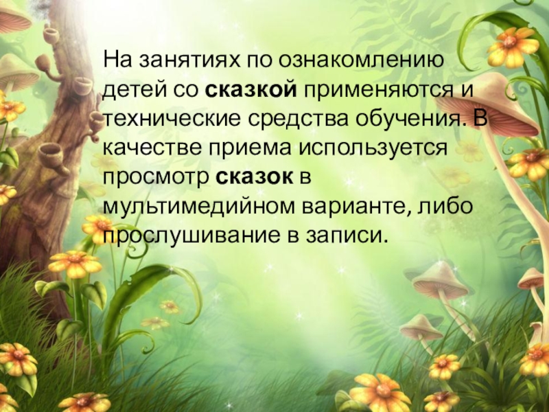 Слайд 21На занятиях по ознакомлению детей со сказкой применяются и технические средства обучения. В