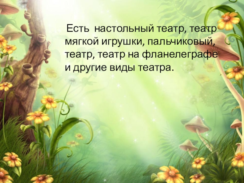 Слайд 19 Есть настольный театр, театр мягкой игрушки, пальчиковый, театр, театр на