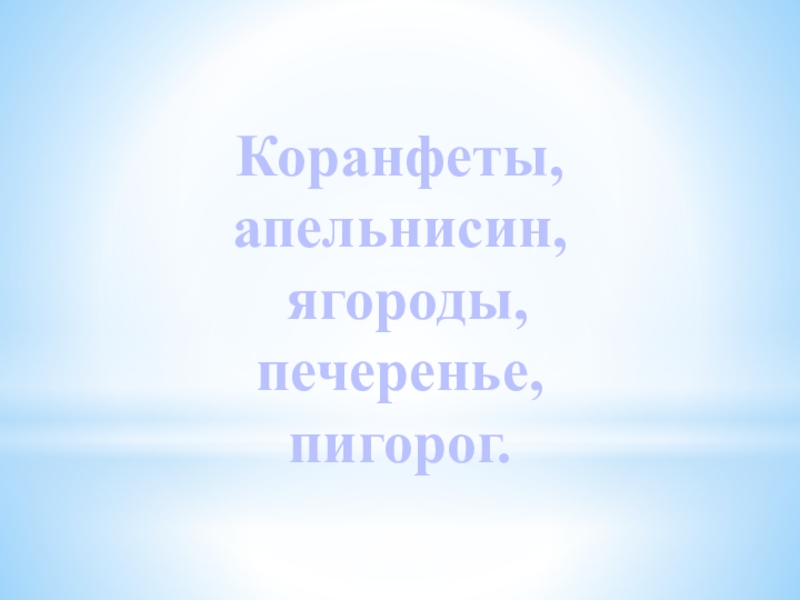 Коранфеты,апельнисин, ягороды,печеренье,пигорог.