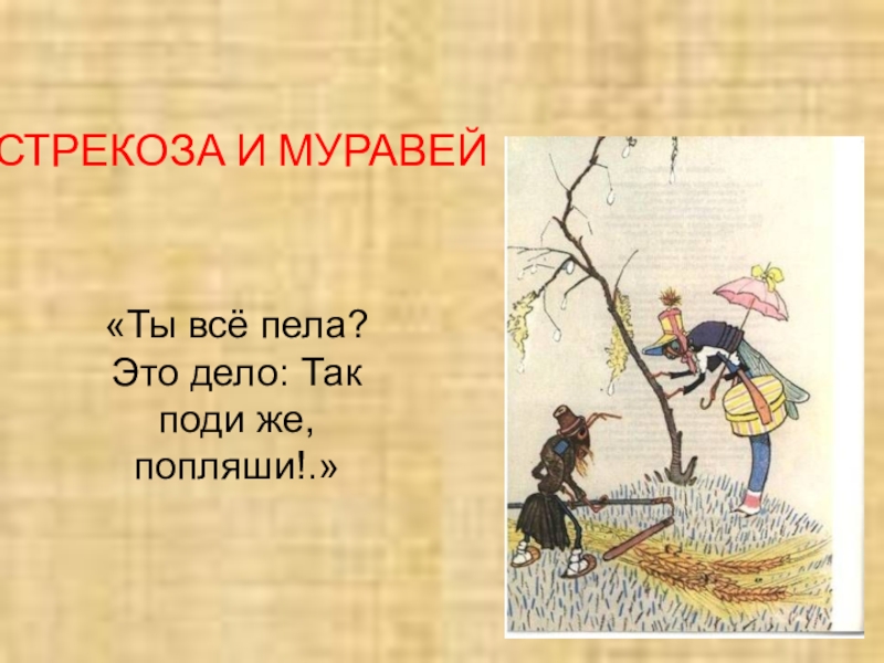 СТРЕКОЗА И МУРАВЕЙ«Ты всё пела? Это дело: Так поди же, попляши!.»