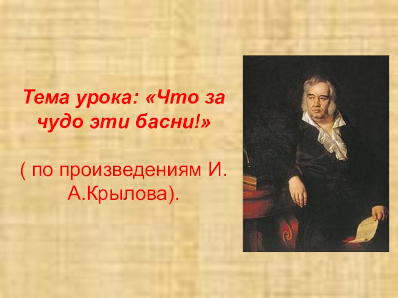 Слайд 1Тема урока: «Что за чудо эти басни!»