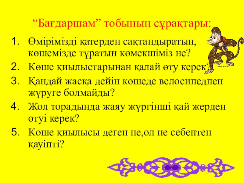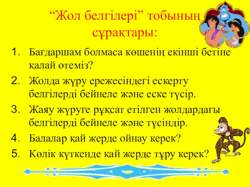 Слайд 5“Жол белгілері” тобының сұрақтары: