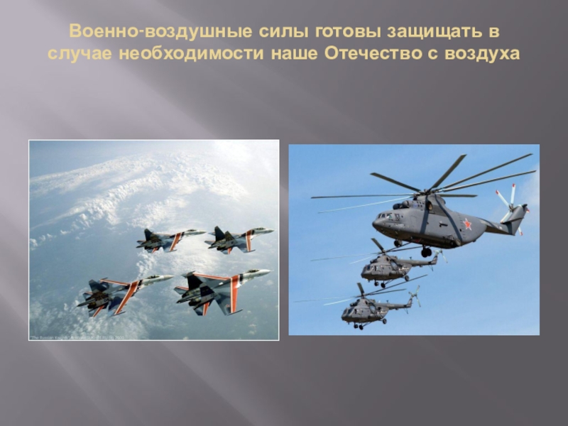 Слайд 4Военно-воздушные силы готовы защищать в случае необходимости наше Отечество с воздуха