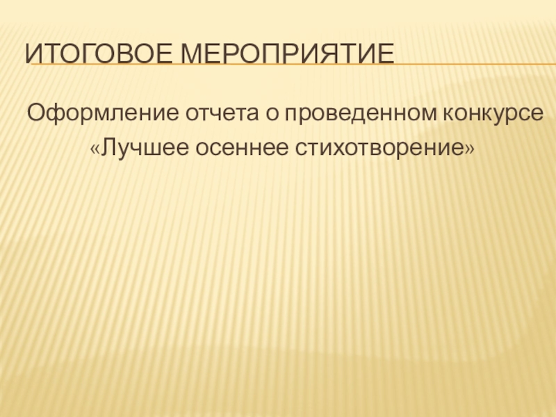 Итоговое мероприятиеОформление отчета о проведенном конкурсе«Лучшее осеннее стихотворение»