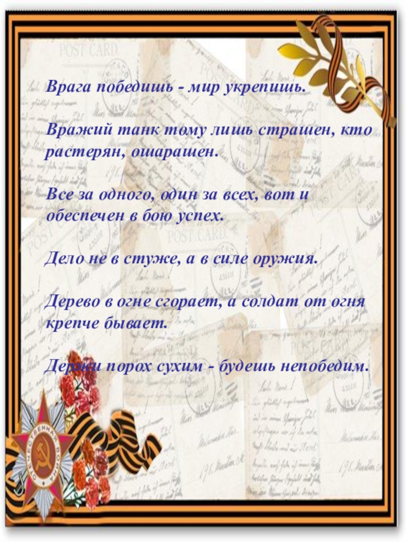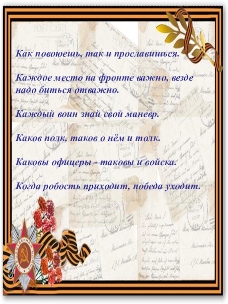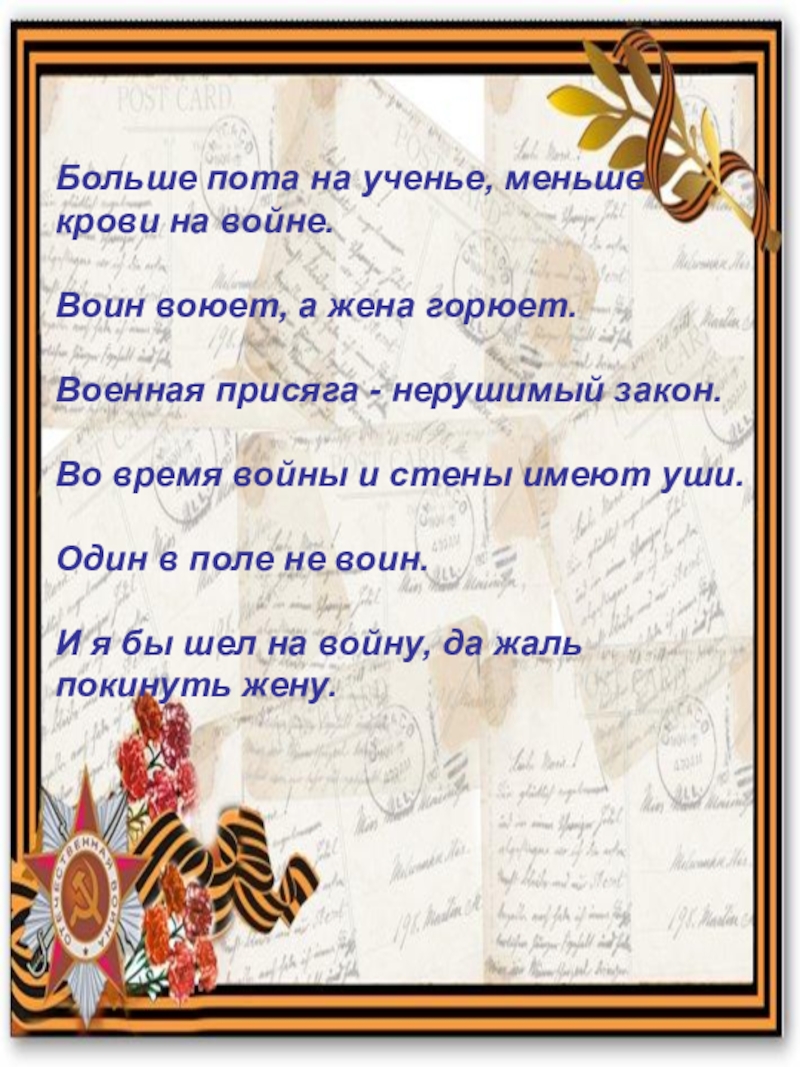 Слайд 2Больше пота на ученье, меньше крови на войне.