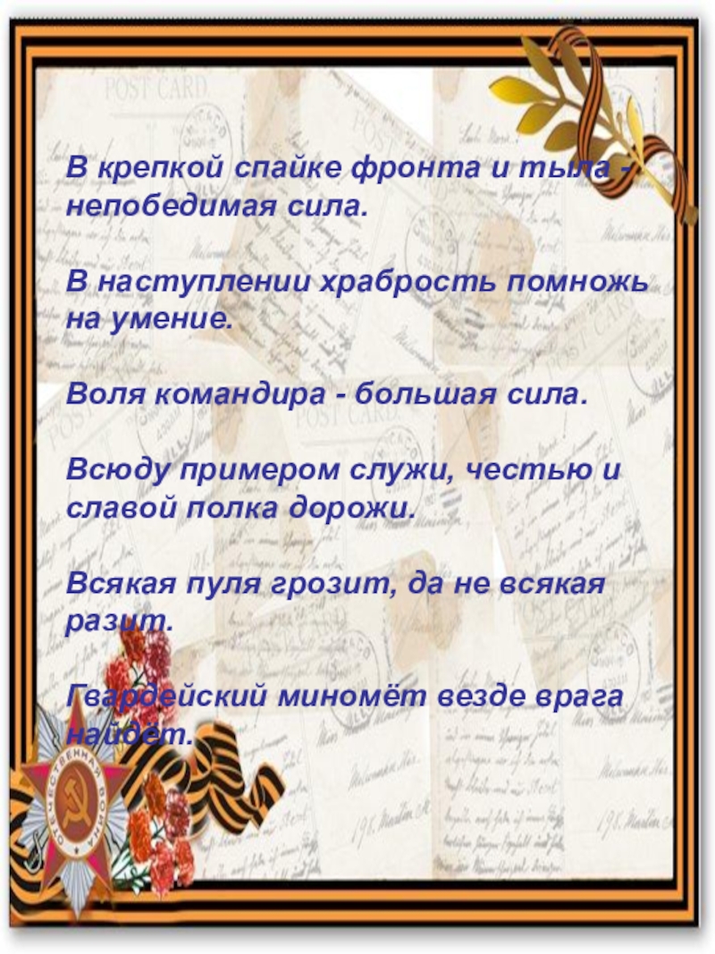 Если время трудное придёт, наш боец против семерых пойдёт.
