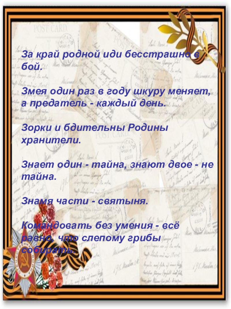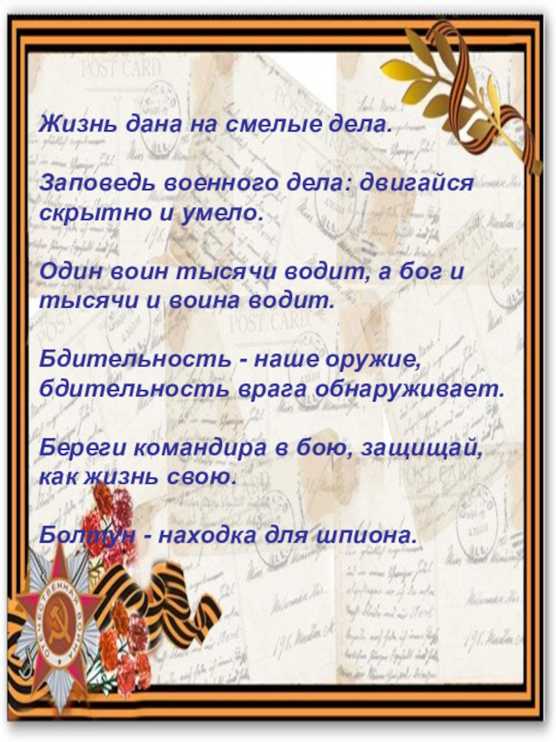 Бдительность - наше оружие, бдительность врага обнаруживает.