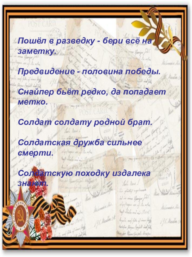 Слайд 12Пошёл в разведку - бери всё на заметку.
