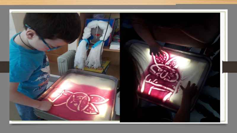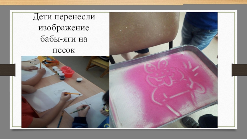 Слайд 8Дети перенесли изображение бабы-яги на песок