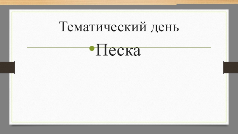 Презентация, доклад на тему Тематический день по опытно-экспериментальной деятельности ДЕНЬ ПЕСКА