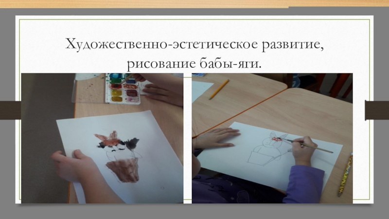 Слайд 6Художественно-эстетическое развитие, рисование бабы-яги.
