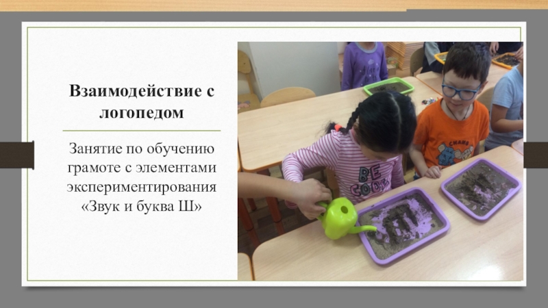Взаимодействие с логопедомЗанятие по обучению грамоте с элементами экспериментирования «Звук и буква Ш»