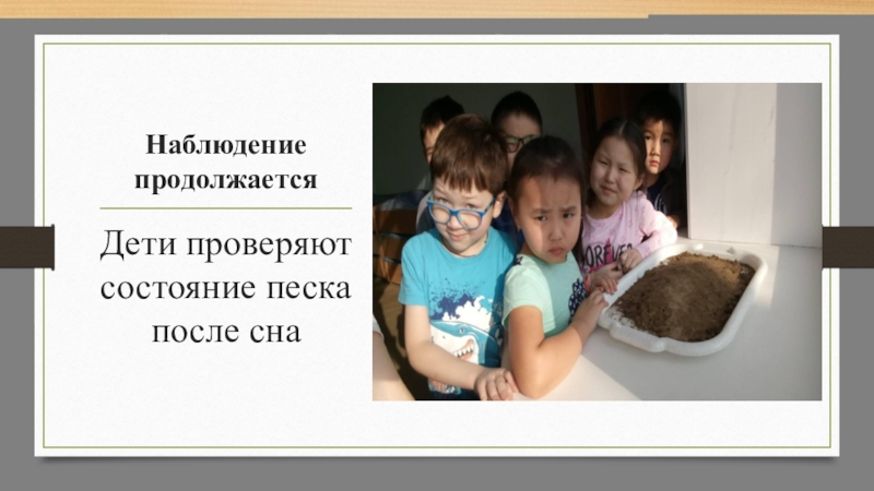 Наблюдение продолжаетсяДети проверяют состояние песка после сна