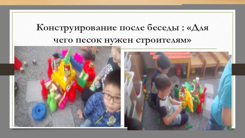 Слайд 16Конструирование после беседы : «Для чего песок нужен строителям»