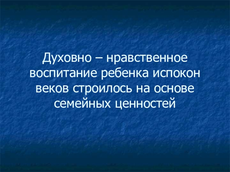Слайд 3 Духовно – нравственное воспитание ребенка испокон веков строилось на основе семейных