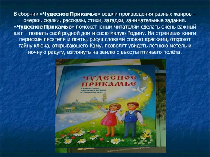 Слайд 8 В сборник «Чудесное Прикамье» вошли произведения разных жанров – очерки, сказки,