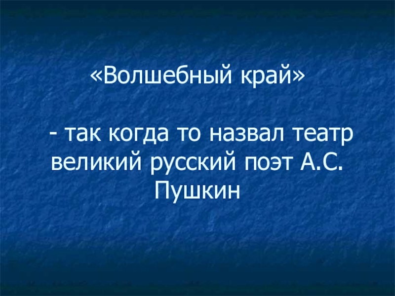 Слайд 14 «Волшебный край» - так когда то назвал театр великий русский поэт