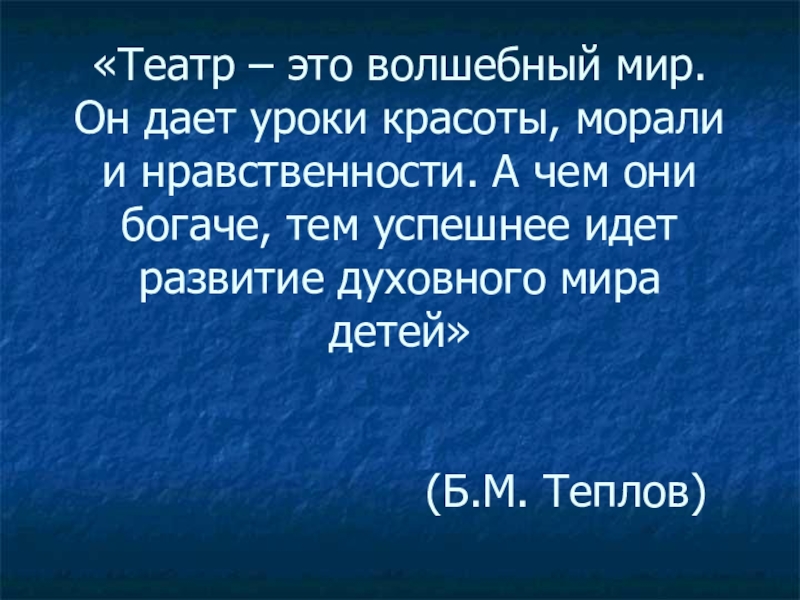 Слайд 2 «Театр – это волшебный мир. Он дает уроки красоты, морали и