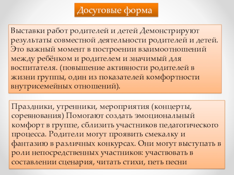 Досуговые формы взаимодействия с родителями