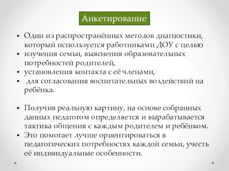 Информационно-аналитическая форма работы с родителями