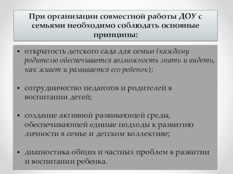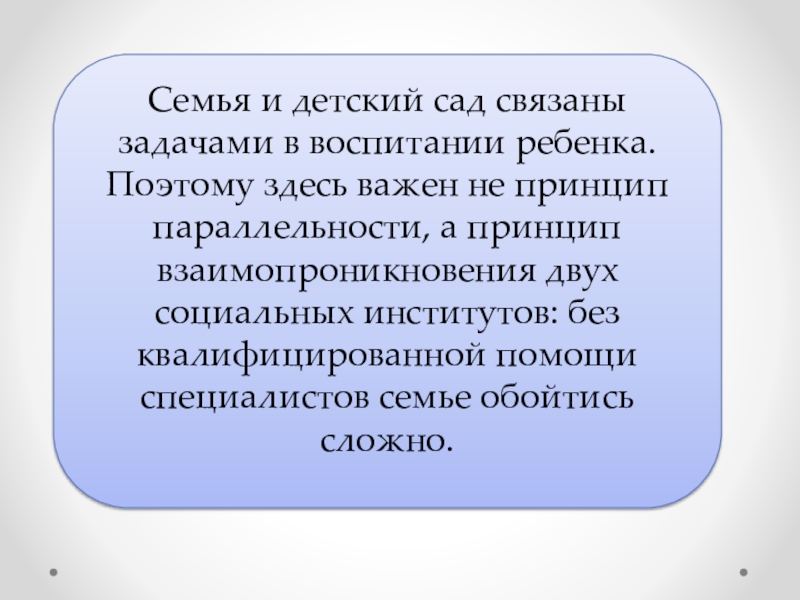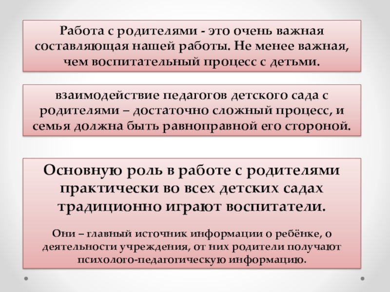 взаимодействие педагогов детского сада с родителями – достаточно сложный процесс, и семья должна быть равноправной его стороной.