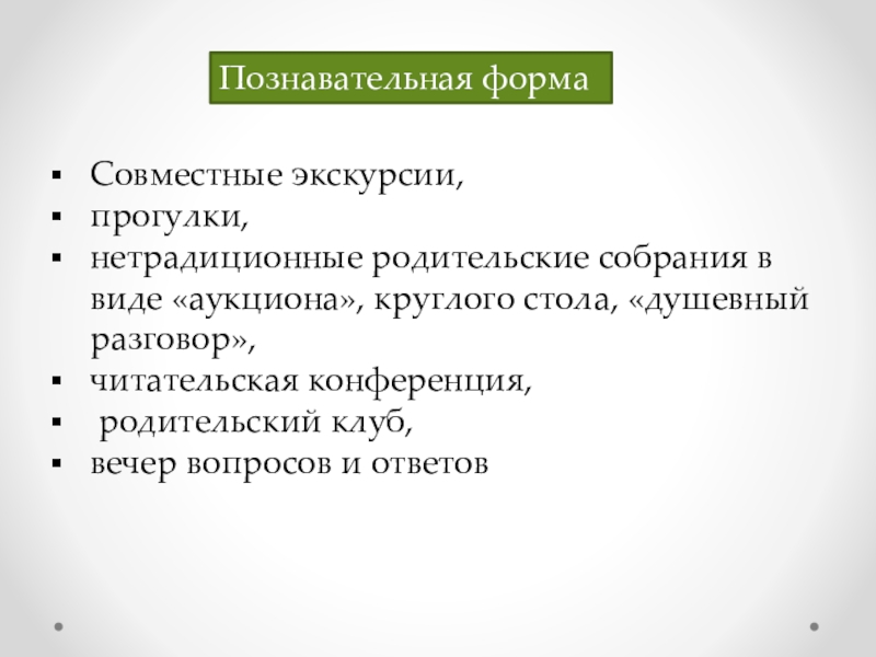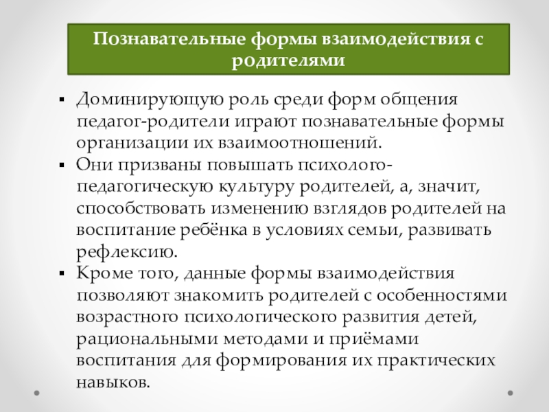 Познавательные формы взаимодействия с родителями