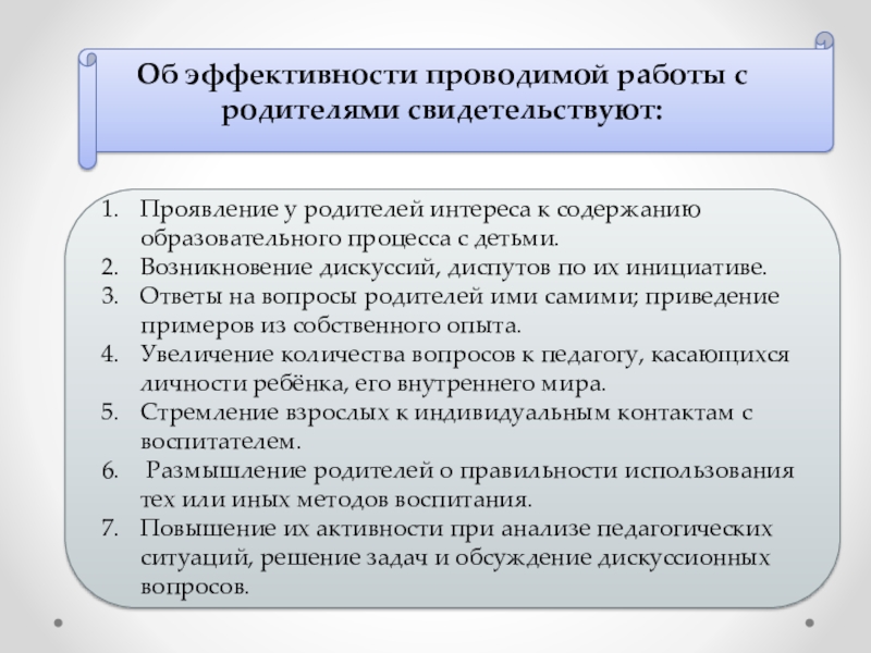 Об эффективности проводимой работы с родителями свидетельствуют: