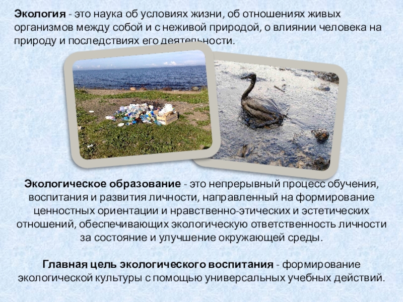 Экология - это наука об условиях жизни, об отношениях живых организмов между собой и с неживой природой, о влиянии человека на природу и последствиях его деятельности.