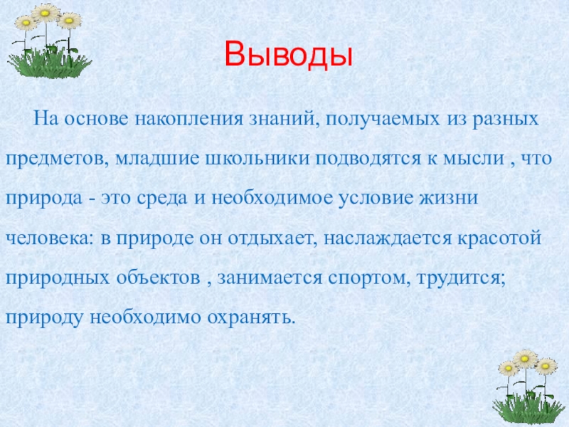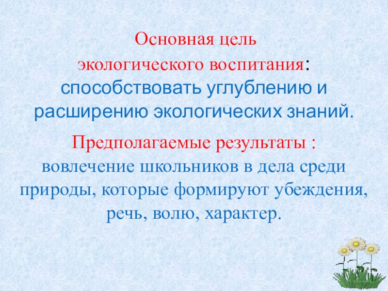 вовлечение школьников в дела среди природы, которые формируют убеждения, речь, волю, характер.