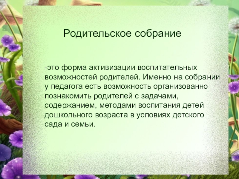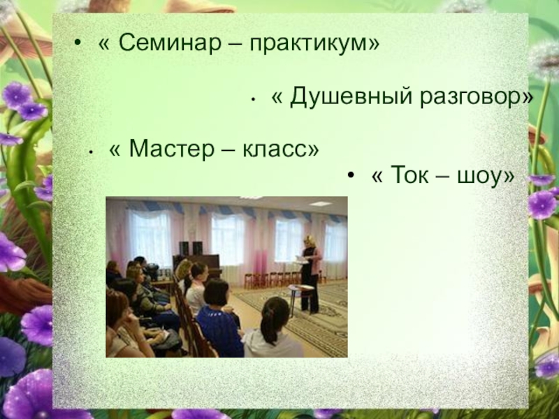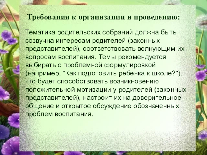 Тема: «Коллективная форма работы с семьёй Требования к организации и проведению Представьте тематику применения коллективных форм взаимодействия ДОО и родителей»