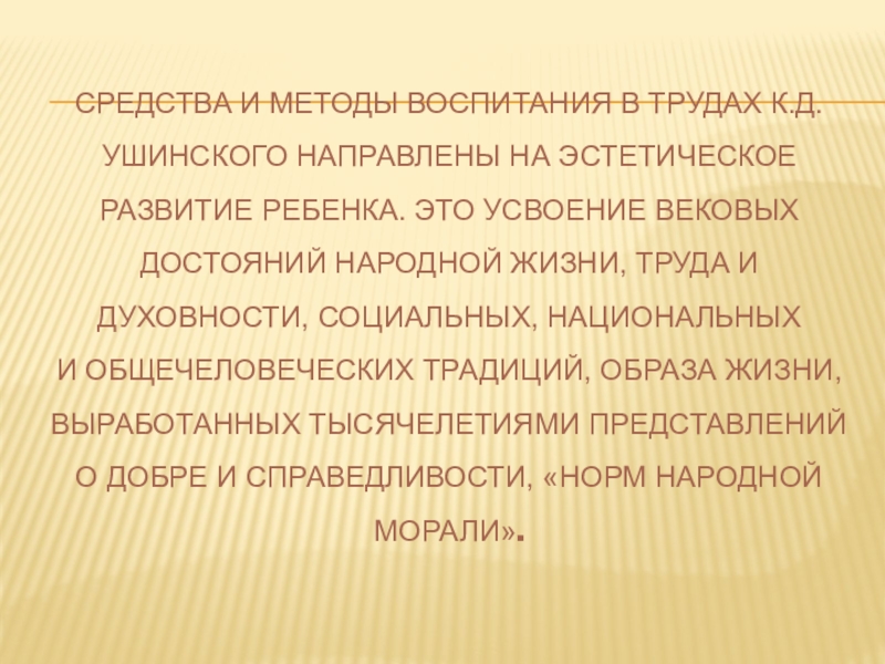 Слайд 10средства и методы воспитания в трудах К.Д. Ушинского направлены на эстетическое